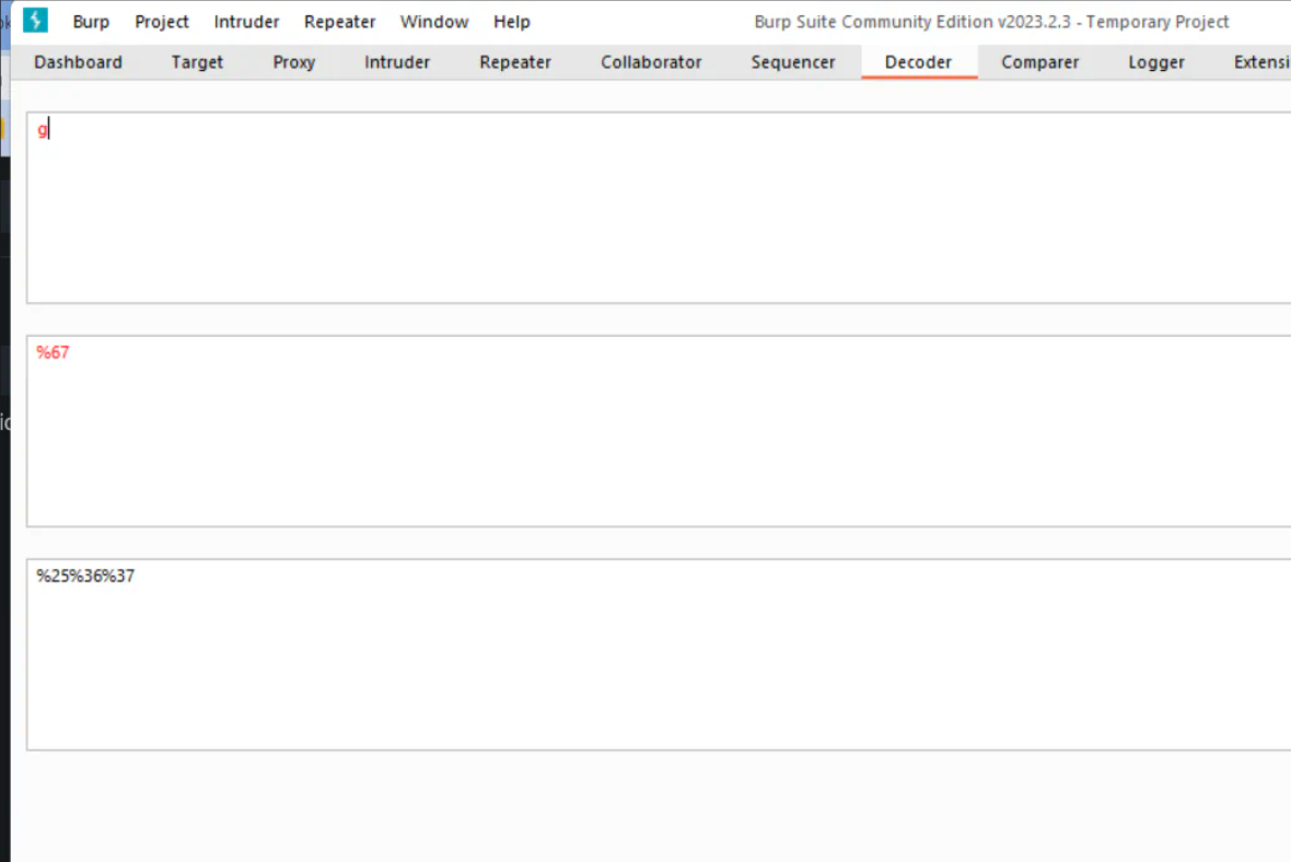 So, we can double URL encode it before sending it, so first time, our own URL will decode it and the second time the urldecode() function will decode it. So I used burp to encode it as shown below.