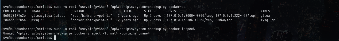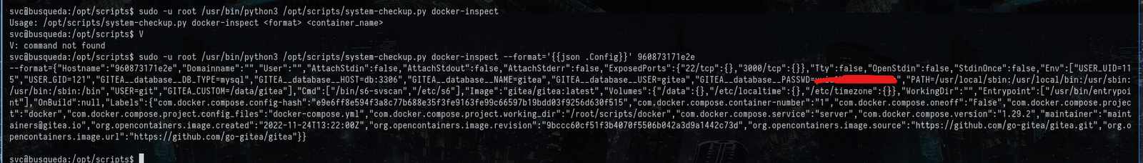 sudo -u root /usr/bin/python3 /opt/scripts/system-checkup.py docker-inspect --format='{{json .Config}}' 960873171e2e
