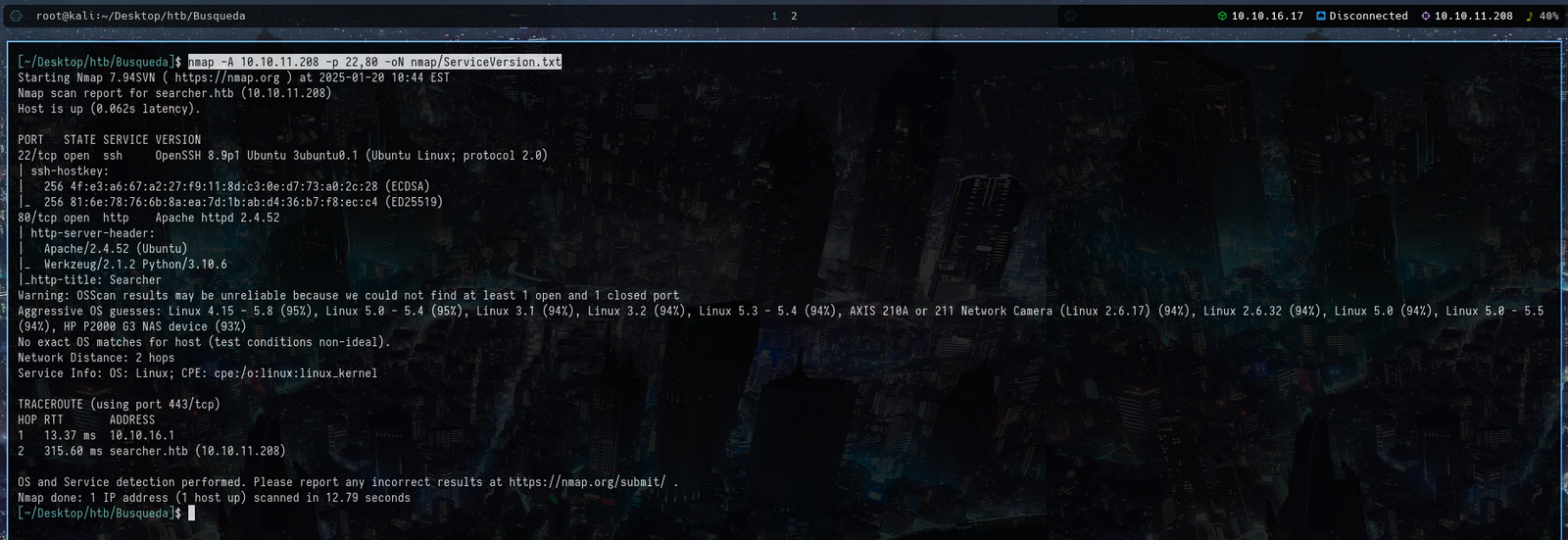 nmap -A 10.10.11.208 -p 22,80 -oN nmap/ServiceVersion.txt