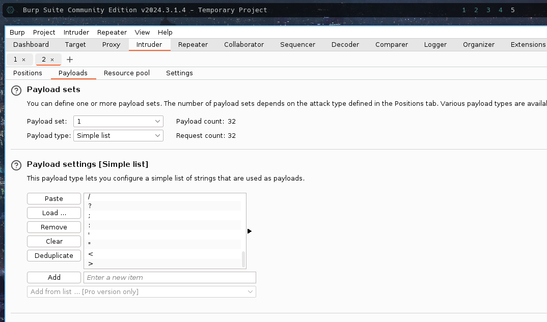 Added a payload with the value of the query parameter to check if its behaviour changes with special characters.